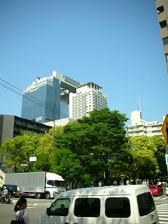 大淀中交差点から見える梅田スカイビルとウェスティンホテル大阪
