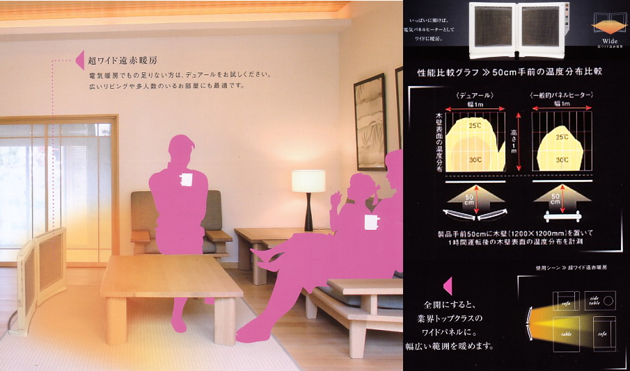 そこで、ネットで探しに探して、半分オイルヒーターのような対流式、半分遠赤外線パネルヒーターの機能を持ち合わせた、
