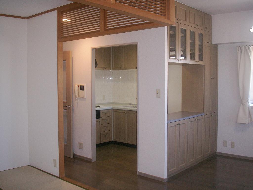 キッチンと和室に圧迫されたリビングも広々とし、インテリアも明るくナチュラルな雰囲気で実際よりも広く感じられる空間へと変化いたしました・・・