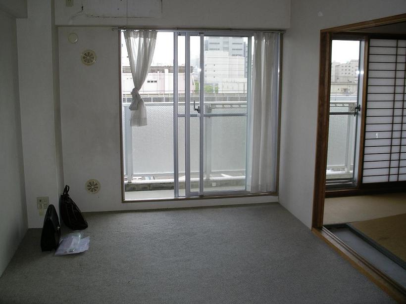 この写真は、着工前のリビングと、隣接する和室がちょこっと写っていますが、以前のマンションプランによくある間取りですね・・・