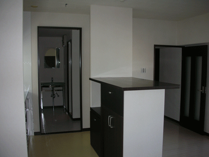 この物件は、西区新町にある「シーズ本町南Ⅱ」という分譲マンションで、2月初めから工事に取り掛かりました。約3週間の工期でLDKを中心に見事に再生されました。シックな感じでなかなか雰囲気のいい仕上がりになってます。